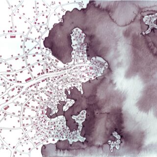 Her drawings are inspired by the visual language of maps and the fractal similarity that cities share with biological processes such as the patterns of cells and neurons.